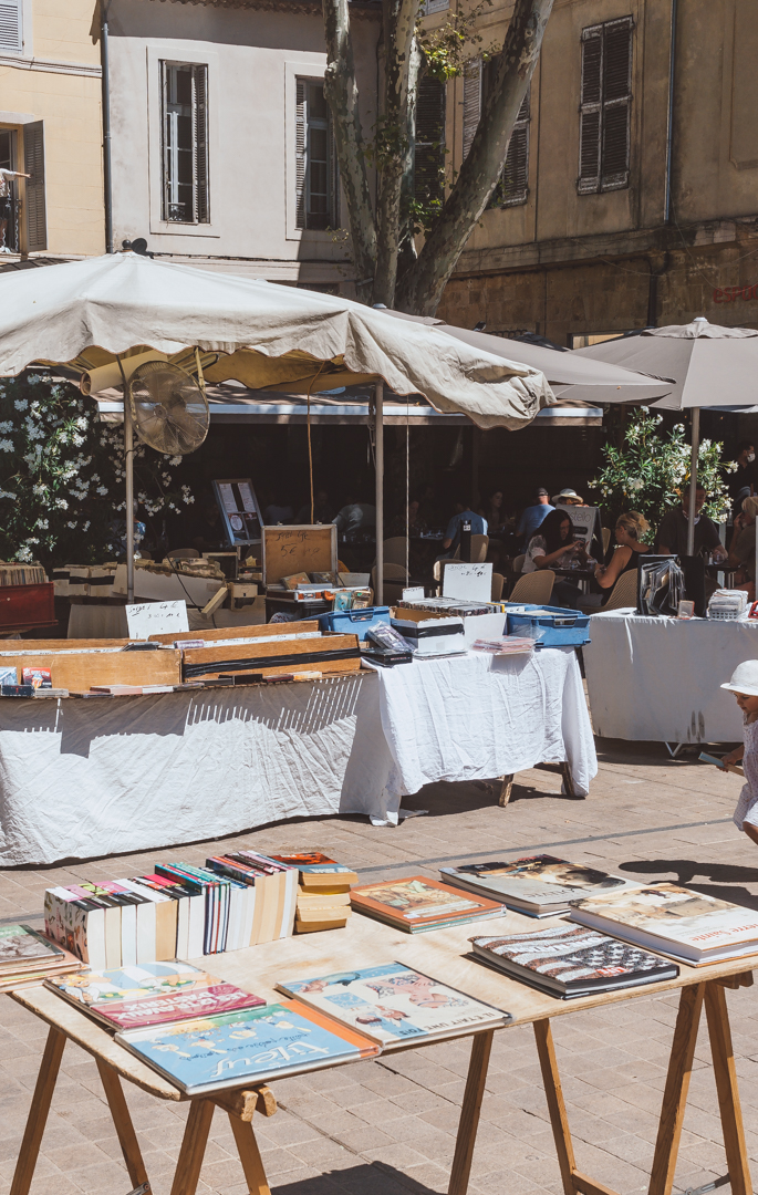 There’s a little bit of everything on offer at this market, so it can be a really fun one to rummage through. And of course, the location at the Rotonde fountain end of Cours Mirabeau adds a layer of magic to the whole experience. We usually pick up a book or two at this market, as there are a couple of great stands selling the classics.