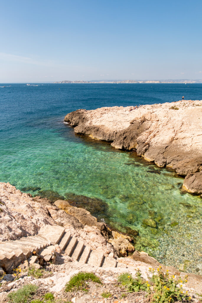 From the central city, jump on the 83 bus from the Quai de Rive Neuve (almost opposite where the little ferry docks). Get off when the bus starts to go inland, at Parc Borely. Cross the road and jump on the 19, which will take you as far as Madrague de Montredon. From here, you could walk the final 2-3km along the coastal path – a beautiful walk! Or, jump on the 20 for the final leg of your journey.