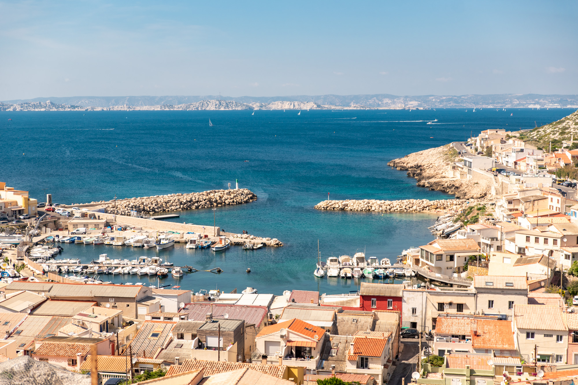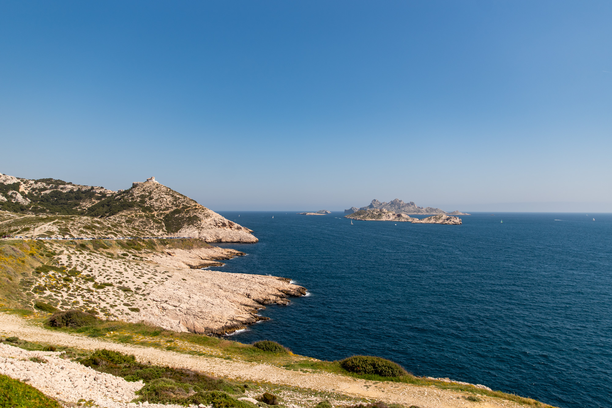 And while this feeling may be misguided, it is, if not the end of the world, the end of the road. Boulevard Alexandre Delabre continues only briefly past Les Goudes, up and over the hill to the petite Port de Callelongue before the hiking trails take over as your only route through the rugged National Park.