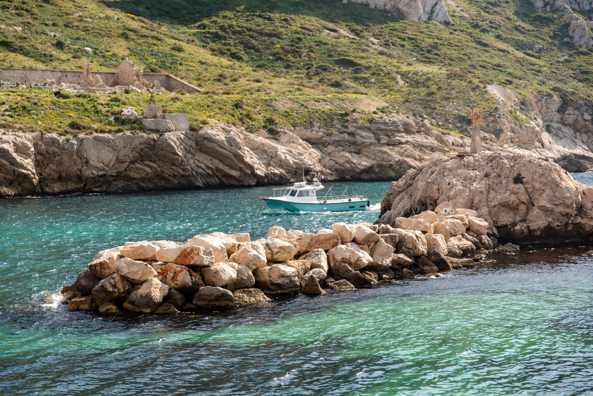 You’ll see the uninhabited Île de Jarron and Île de Jarre that appear to be one and the same, but are actually separated by a thin 1m wide channel. And buried beneath the innocent-looking sea is the wreck of the Grand Saint Antoine – a sailing ship that brought the plague to Marseille before being burned and buried.
