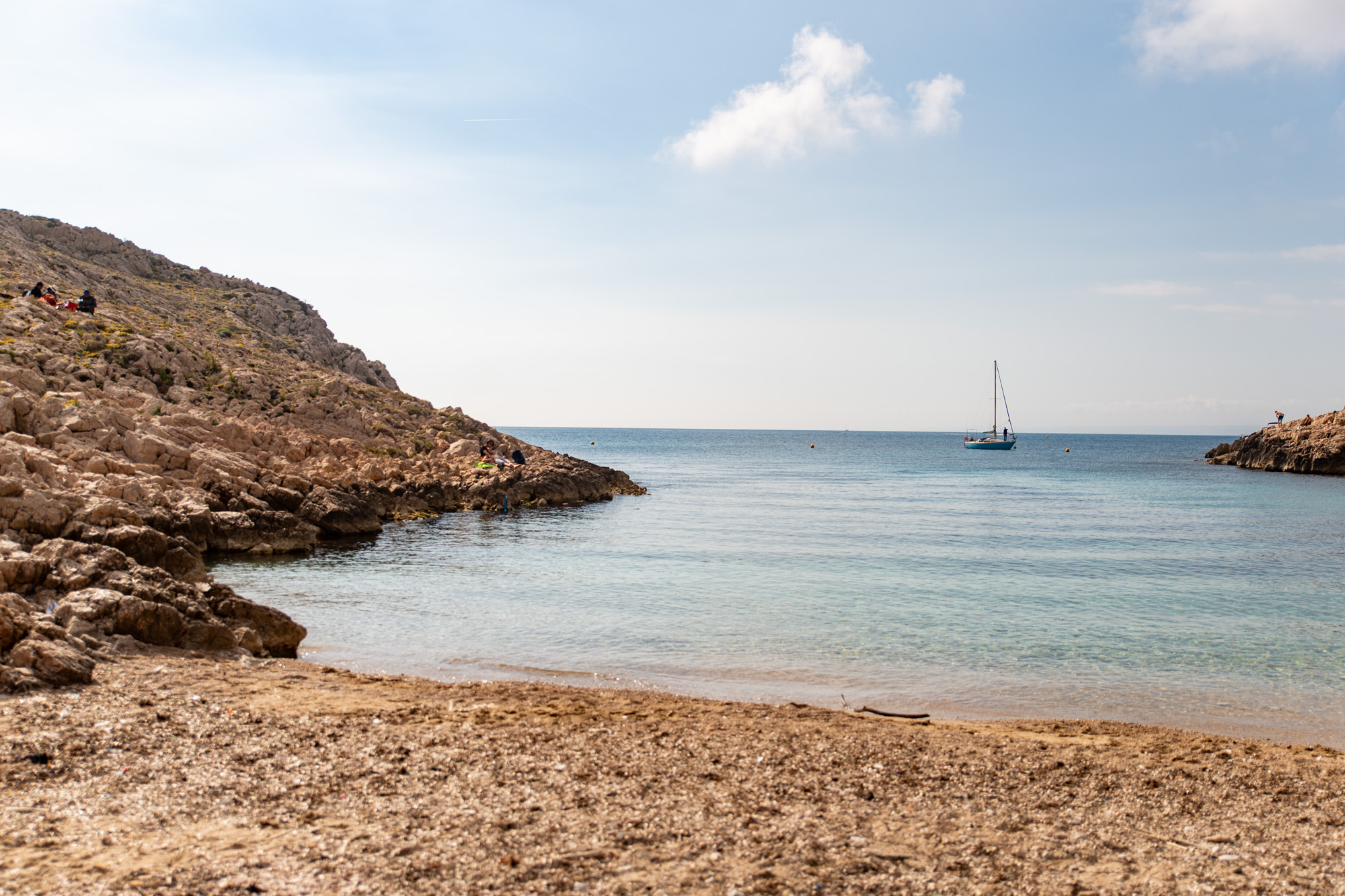 Walking back towards Les Goudes, follow the road, and you’ll come across Anse de la Maronaise, a larger (albeit still small) sandy beach tucked in a semi-sheltered cove.