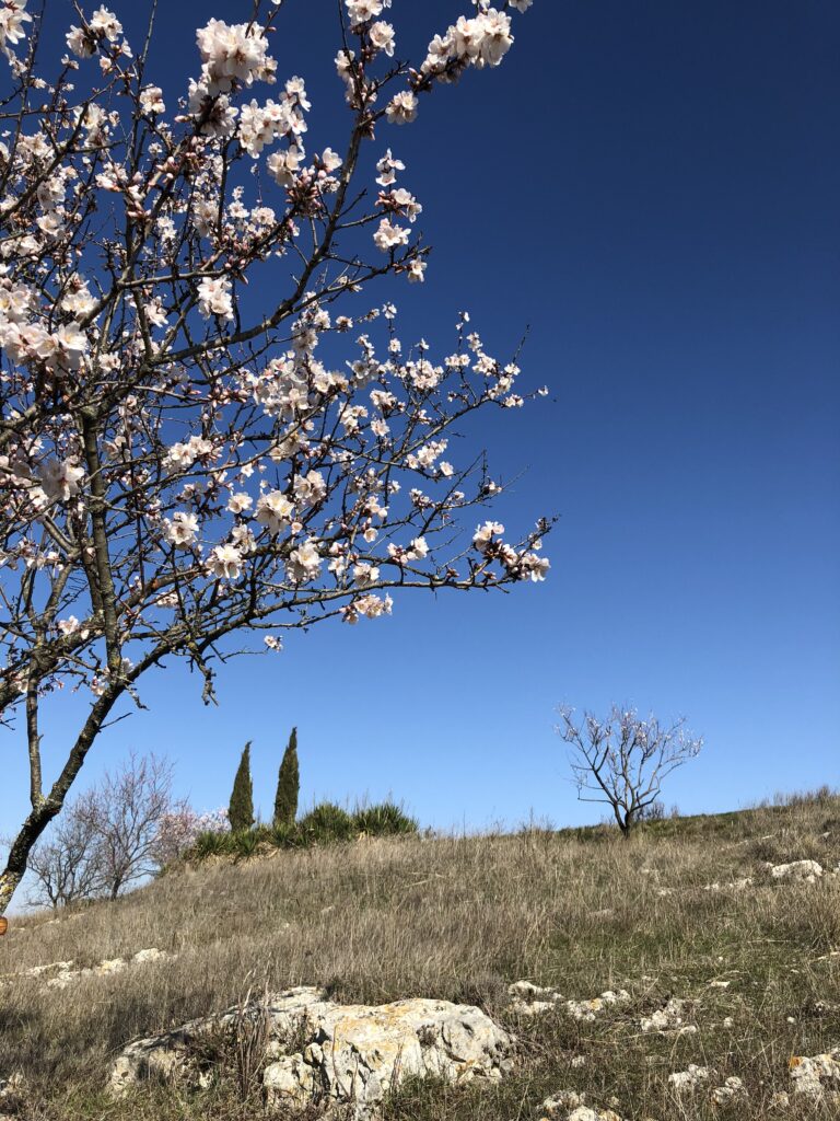 As well as Alleins, you can see almond trees flowering throughout the Luberon. You don’t need a map – if you’re travelling throughout the region in early spring, their early blooms stand out against the otherwise bare earth.