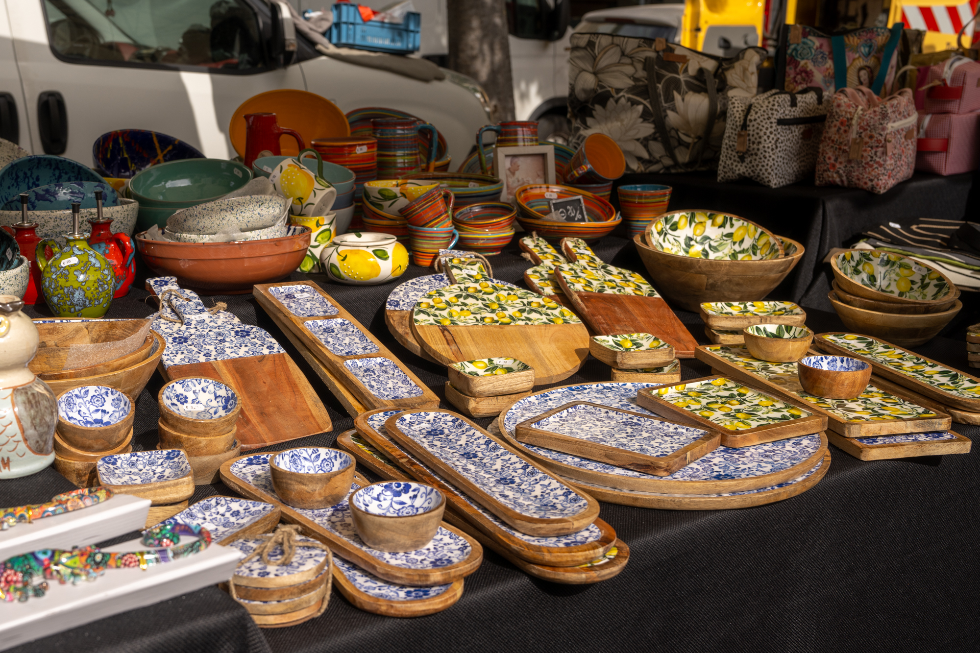 Local delicacies include seasonal truffles, olive oil from the foothills of the Alpilles, chewy nougat and wines produced at family run vineyards nearby. This Provençal market is also a great place to shop for colourful ceramics, lavender-scented soaps, handcrafted jewellery, or kitchen accessories made from olive wood.