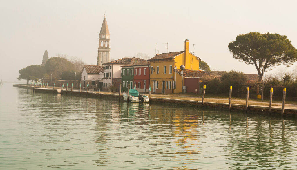 Vividly coloured houses line Burano’s curvy streets and canals, making it a perfect spot for a leisurely stroll, taking photos, and having a fried fish lunch in one of its trattorias.